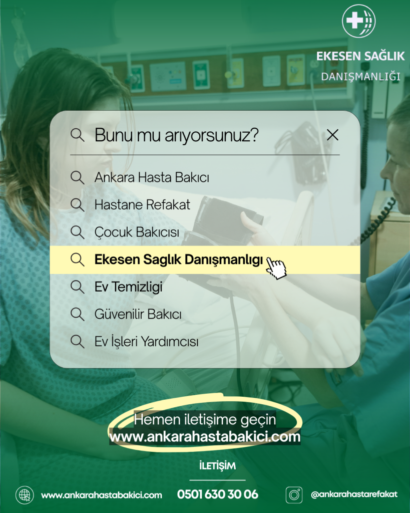 Profesyonel hasta bakım hizmeti almak veya danışmanlık talebinde bulunmak için bizimle iletişime geçin. EKESEN Danışmanlık, size Ankara’da en güvenilir hizmetini sunmaya hazır.